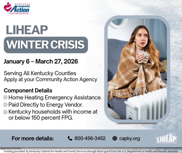 Kentucky households facing heating emergencies can apply for Crisis assistance from January 6 through March 27, 2026.