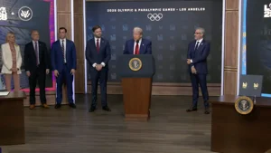 The order mobilizes “the entire federal government,” according to Trump, to make the Games successful. The task force includes the president as its chair, Vice President JD Vance as its vice chair, seven cabinet secretaries, multiple deputy chiefs of staff, the FBI director, the Federal Communications Commission chairman and others, if needed.